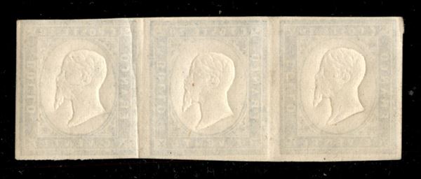 1860 - striscia orizzontale di tre 20 cent azzurro (15Ca) - gomma integra - margini perfetti