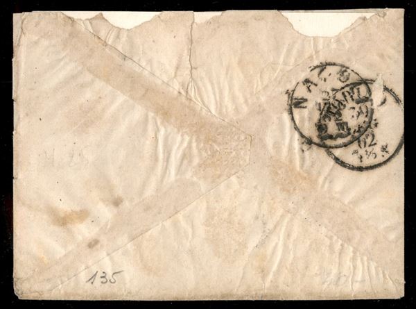 Busta affrancata con 5 grana lilla scuro (21d) diretta ad un "Capitano nel 46° di fanteria" da Spezzano Albanese 25 LUG.1862 per Torino - non comune