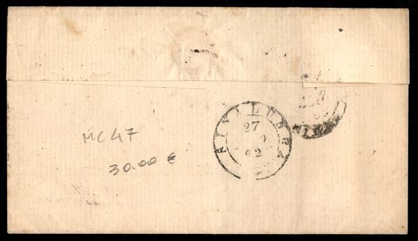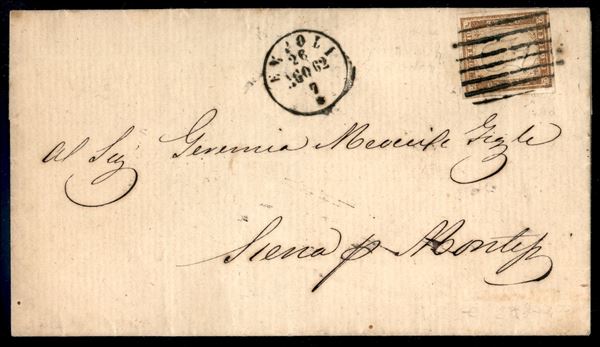 Lettera affrancata con 10 cent bruno (14Cp cat.1200) annullato con bollo a sbarre da Empoli 26 AGO 62 per Siena