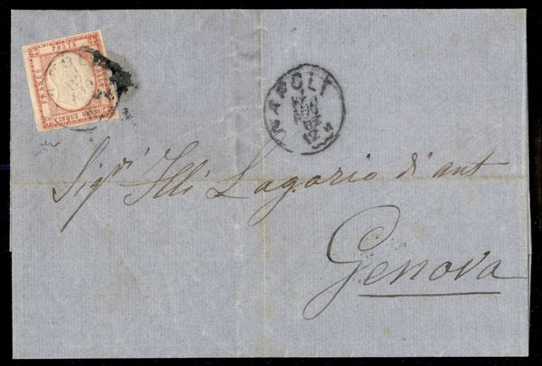 Lettera affrancata con 5 grana rosa (21e cat.975) esemplare delle ultime tirature - da Napoli 17 AGO 62 per Genova - firma Chiavarello