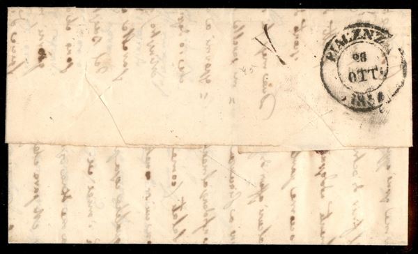 Lettera preconvenzione affrancata con 20 cent azzurro (8 cat.1350) da Torino 27 OTT.54 a Piacenza con segno di tassa 3 per l'inoltro a destino - tagli di disinfezione - non comune per il ducato di Parma