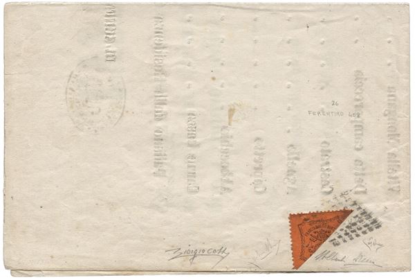 Tariffario stampato spedito probabilmente sotto fascia da Ferentino 09.68 recante un 10 cent bene dentellato frazionato diagonalmente - RARITA' in splendide condizioni - AD esteso + Mondolfo + cert. ED + cert. Colla