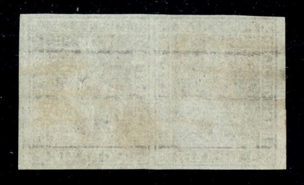1851 - Bella coppia bordo di foglio del 9 crazie bruno violaceo su grigio (8) con punto bianco sul muso dell'esemplare di destra - usato - qualità lusso