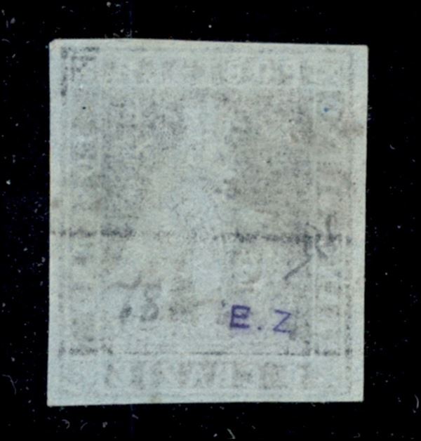 1851 - Bellissimo esemplare del 6 crazie ardesia su grigio (7) con difetto su A di Francobollo - usato - splendida qualità lusso