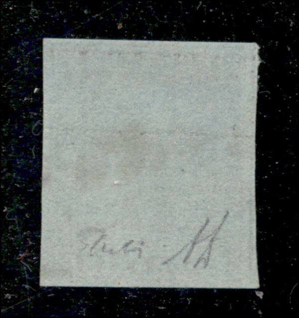 1851 - Esemplare ben marginato del 4 crazie verde su grigio (6) con grande macchia di colore - usato - lusso - Diena