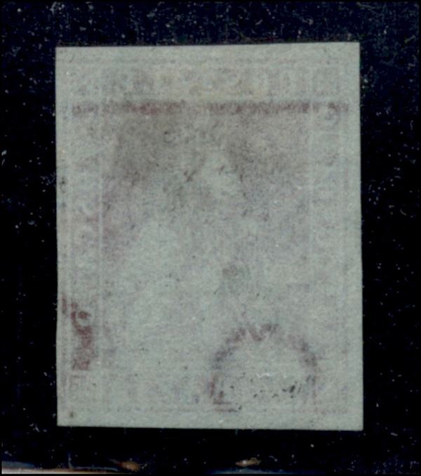 1851 - Splendido esemplare bordo di foglio del 1 crazia carminio chiaro (4) con grande bordo dello scudo mancante - usato - qualità lusso