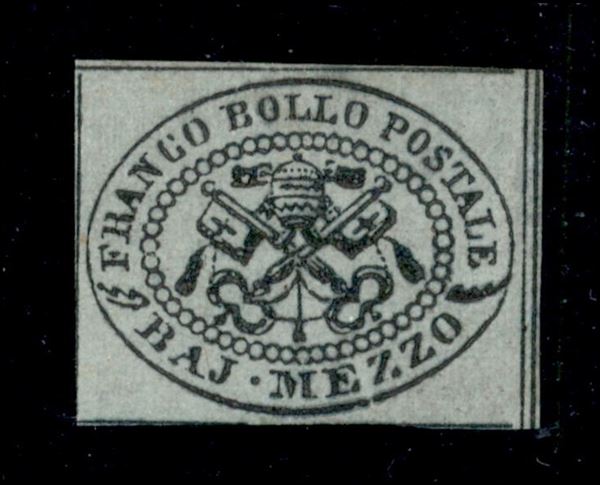 1852 - 1/2 baj (1) - bene marginato - gomma originale - cert. Colla