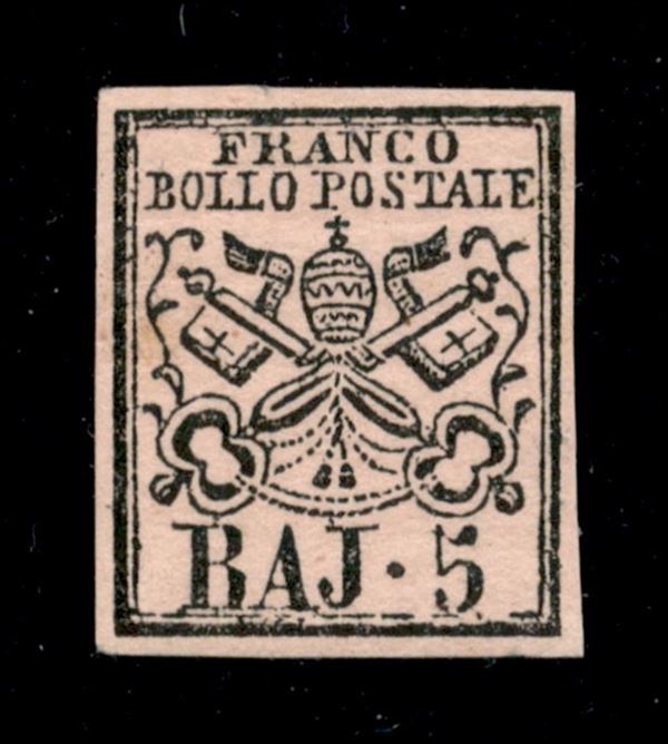 1852 - 5 baj (6) - ben marginato . gomma originale - firmato Raybaudi
