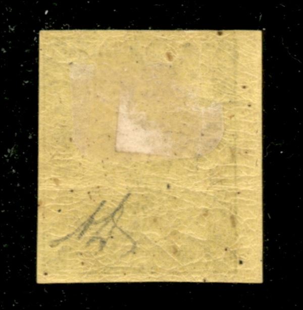 1852 - Fresco esemplare del 5 cent giallo (1) con bordo di foglio a sinistra - nuovo con gomma originale - Diena