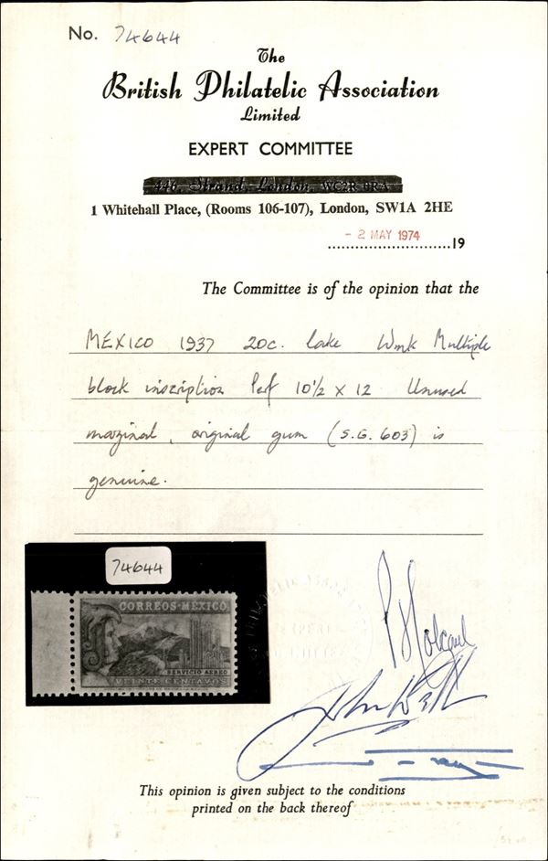 1937 - 20 cent Servicio Aereo (SG 603) con filigrana lettere multipla e dentellato 10 1/2 x 12 - bordo foglio - nuovo con gomma integra - molto bello e raro - Cert. Bpa