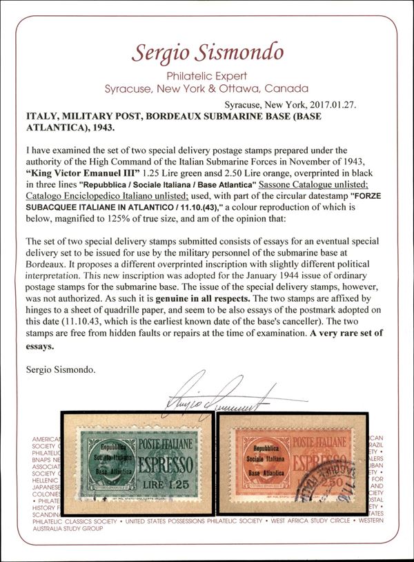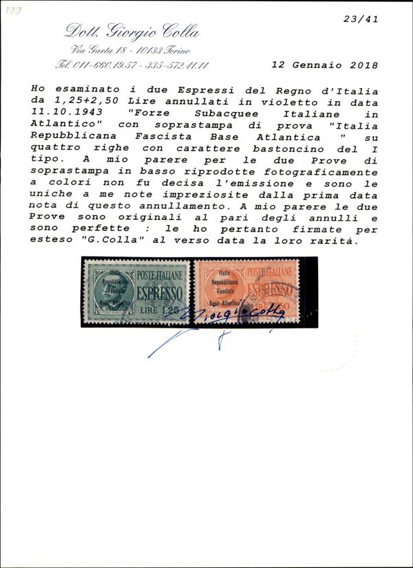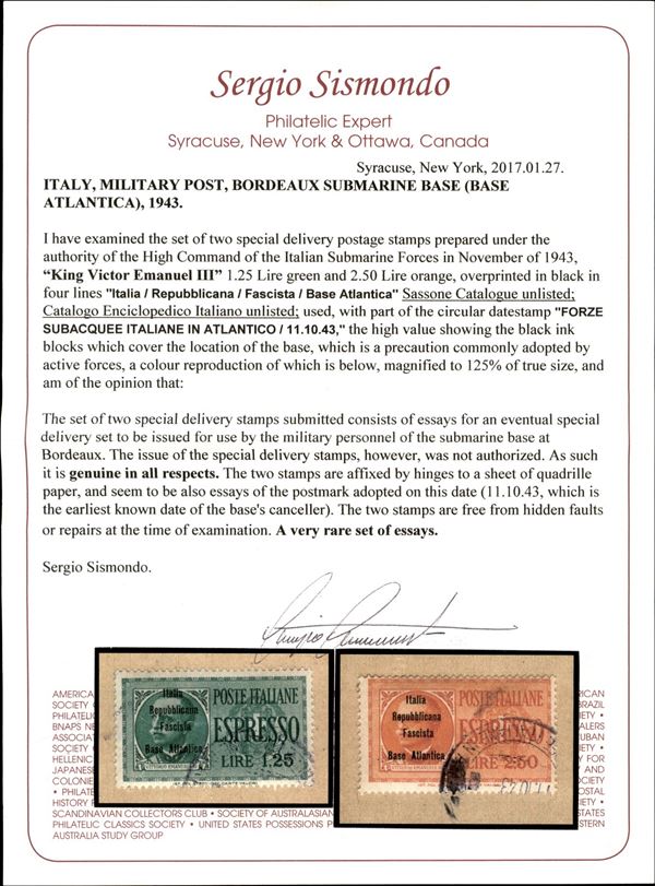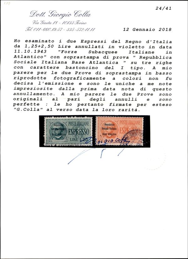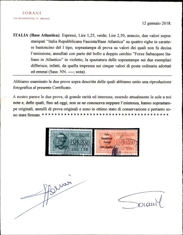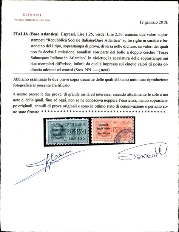 1943 - Non Emessi - Due serie degli Espressi (Regno 15/16) con le soprastampe non Adottate - usati - unici noti - grande rarità del settore - cert. Gismondo + cert. Sorani + cert. Colla