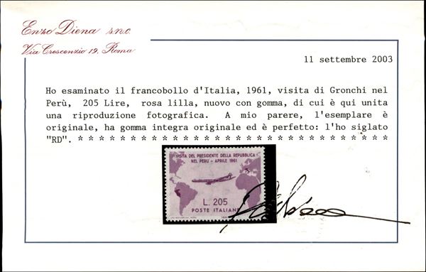 1961 - Gronchi Rosa (921) - ottimamente centrato - gomma integra - molto bello - cert. Diena