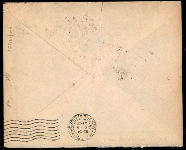 8° Fiera Campionaria 10 cent + due 20 cent (125/126) su busta da Tripoli a Milano del 2.5.34 - in tariffa