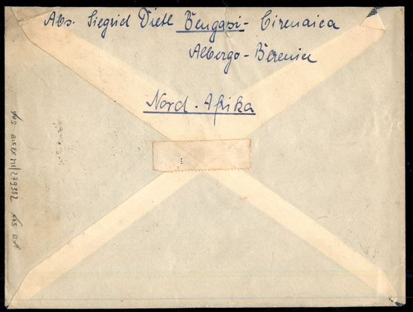 80 cent Libia Posta Aerea (2) + complementari su aerogramma da Bengasi a Dresda del 11.9.37 - molto bello