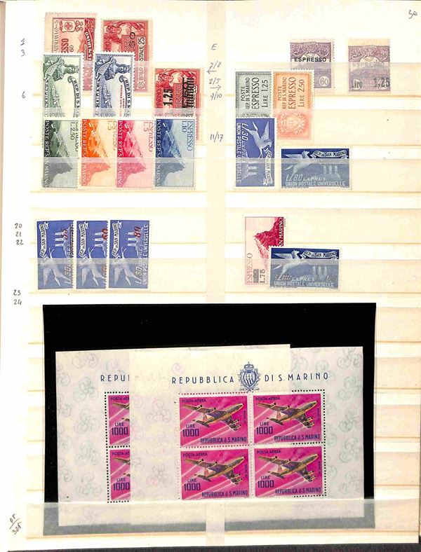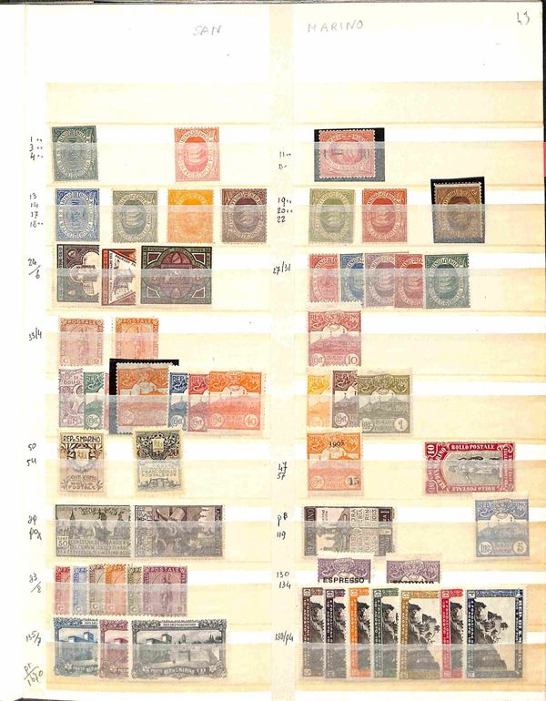 AREA ITALIANA - 1851/1976 circa - Accumulazione ordinata di valori prevalentemente nuovi + usati del periodo i 3 classificatori pił fogli d'album di Italia San Marino Vaticano e Smom - buona presenza di Regno e Antichi Stati con anche alcuni esemplari interessanti pił moderno del resto dei paesi - merita esame