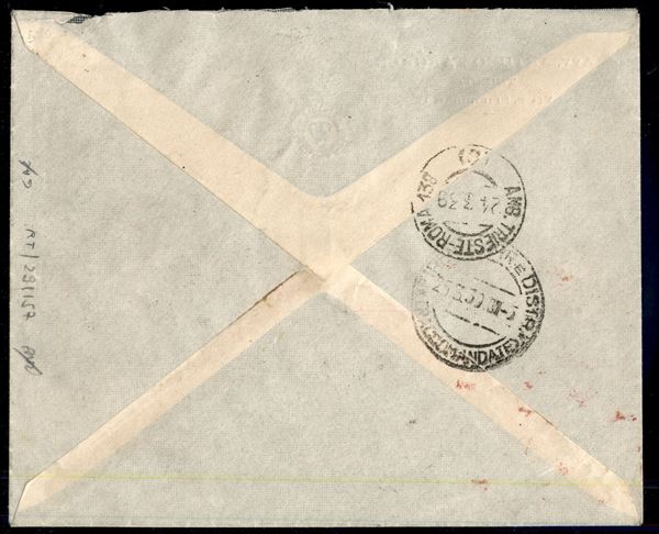 Augusto 2,55 + 2 lire + Impero 10 cent + 20 cent (425 + 439/440) + complementari su raccomandata espresso da Trieste a Firenze del 24.3.39 in tariffa - molto bella