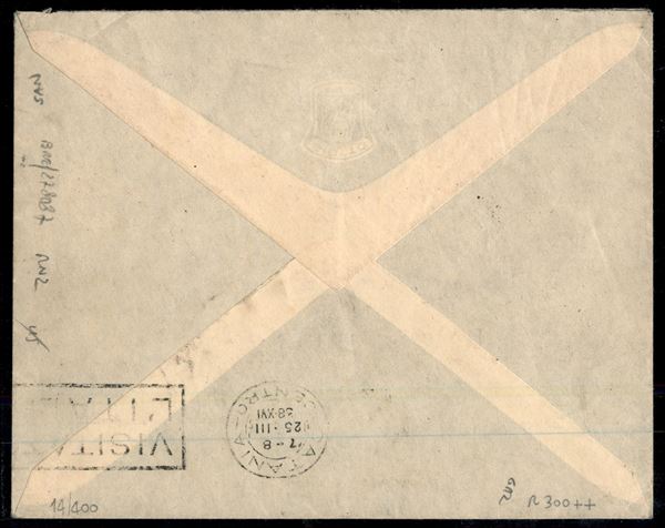 Bimillenario Augusteo 1 + 1 lira Posta Aerea (109) + Marconi 20 cent (436) + complementare su aerogramma da Milano a Catania del 23.3.38 - molto bello