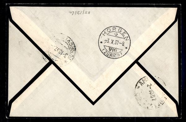 Bimillenario Augusteo 25 cent + 50 cent + 1 lira + 5 lire Posta Aerea (106/107 + 109/110) su aerogramma raccomandato da Fasano del Garda a Zurigo del 2.10.37 - molto bello