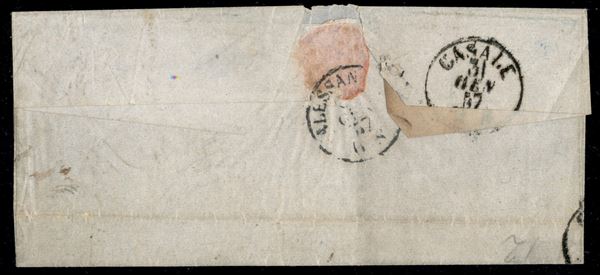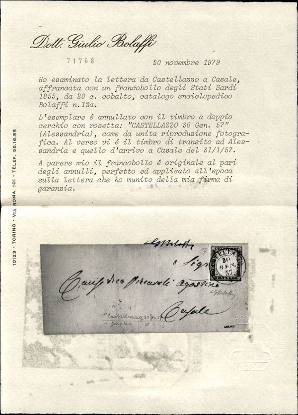 Castellazzo (P.ti 5) - splendido esemplare del 20 cent cobalto con grandi margini (15) su bustina per Casale del 30.1.57 - cert. G. Bolaffi