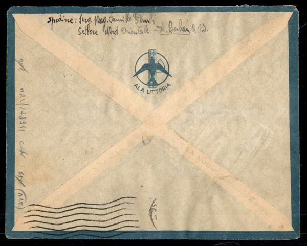 Debra Behran (Scioa)/Vaglia e Risparmi 11.3.39 - aerogramma affrancato con valori di AOI (2 + 4 + 7 + 10) per Genova - timbro non comune