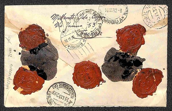Decennale 2,75 lire + 25 cent (329 + 339) + Garibaldi 75 cent (320) + Imperiale 10 lire + 25 cent (248 + 258) su assicurata (franchi oro 1080) da Ancona a Francoforte - busta molto bella in ottime condizioni