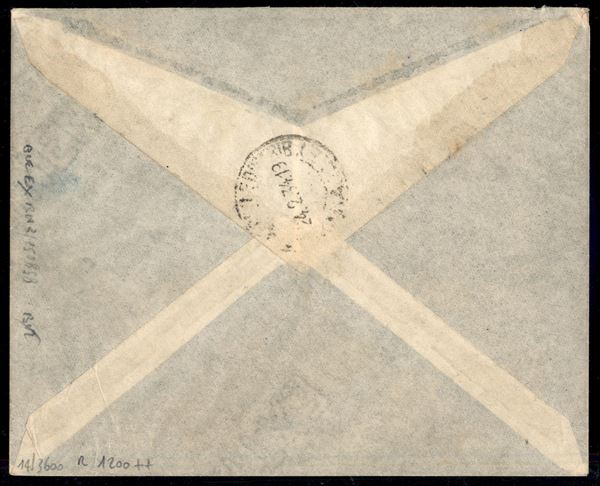 Decennale Marcia su Roma 10 lire + 50 lire Posta Aerea (40 + Aerea 29) su aerogramma raccomandato espresso da Bengasi a Roma del 21.2.34 - raro uso degli alti valori - qualche ingiallimento ma ugualmente splendido