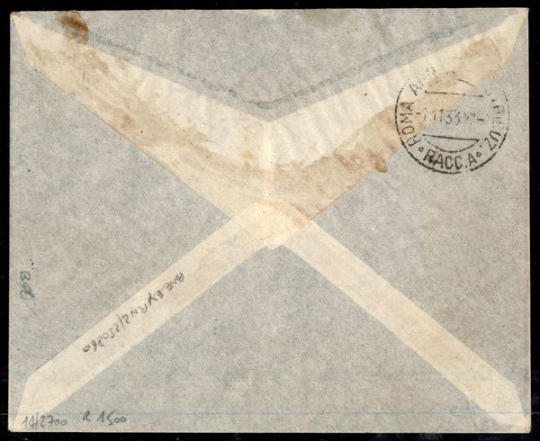 Decennale Marcia su Roma 1,75 lire + Posta Aerea 50 cent 75 cent 1 lira e 3 lire (37 + Aerea 22/25) su aerogramma raccomandato da Bengasi a Roma del 29.10.33 - raro e malgrado qualche ingiallimento ugualmente splendido