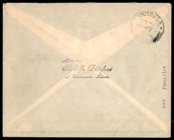 Democratica 100 lire + 5 lire (59 + 67) su raccomandata da trieste a Venezia del 8.2.50 - non comune l'uso per l'interno