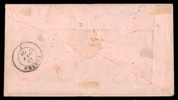 Due esemplari del 20 cent azzurro scuro (15B) su bella bustina di colore rosa da Nizza Marittima a Contes del 11.10.59 - fresca e molto bella - Giulio Bolaffi