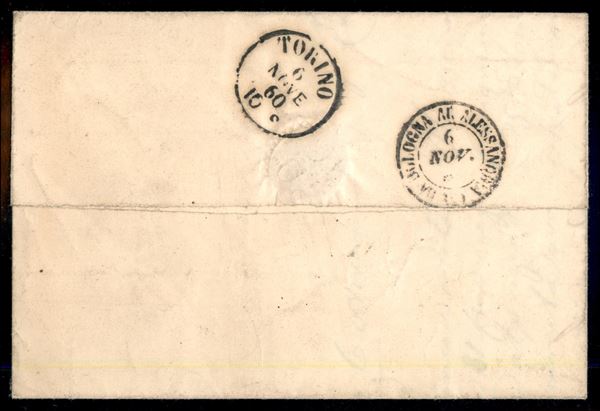 Esemplare ben marginato del 20 cent azzurro (15C) con stampa mancante - lettera da Reggio a Torino del 6.11.60 - molto bella - Giulio Bolaffi