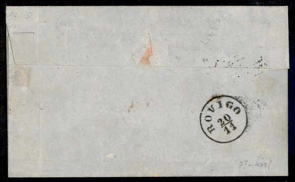 Esemplare ottimamente marginato del 4 bai fulvo (5) isolato su busta da Pontelagoscuro (doppio cerchio + griglia - P.ti 7) a Rovigo del 19.11.59 - molto bella e fresca