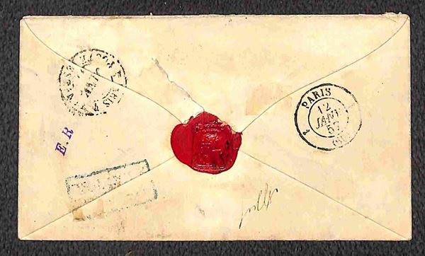 Esemplare ottimamente marginato del 9 crazie bruno violaceo su grigio (8) su bustina per Parigi e annullato con PD in cartella di Firenze del 7.1.57 - molto bella e fresca - A. Diena