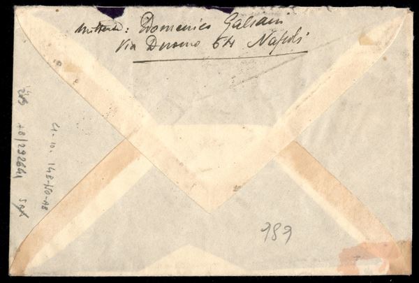 Imperiale soprastampato 50 cent (12) isolato su bustina da Lecce a Salerno del 26.2.44 - non comune