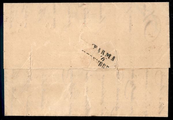 Lettera con coppia del 15 cent (20) da Milano 14/9 del 1855 per Parma con tagli di disinfezione verticali