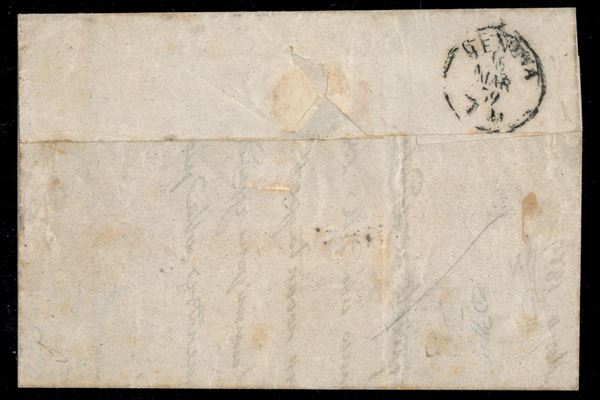 Lettera da Parma 4 Marzo 59 per Genova con coppia 15 cent vermiglio (9) con forte disallineamento (posizioni 30 e 31 del foglio) - insieme d'effetto - Sottoriva