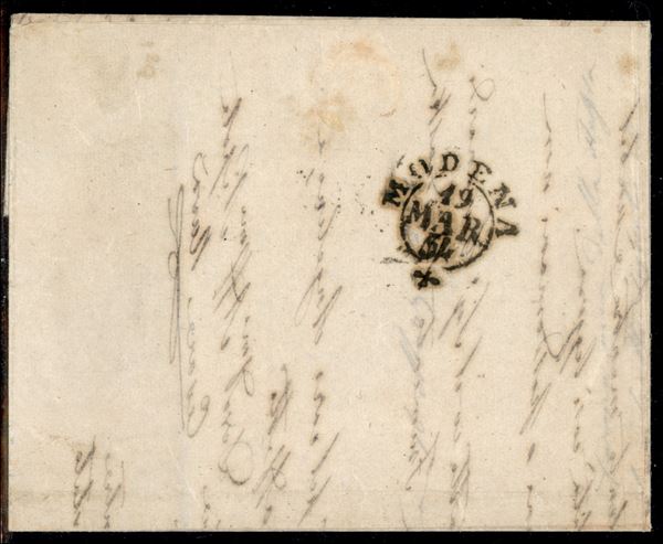 Lettera da Parma a Modena con 15 cent vermiglio (7c) che presenta la varietà greca larga a sinistra
