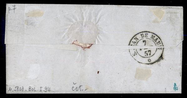 Modane (P.ti 7) - bell'esemplare del 20 cent celeste (15f) su bustina per St. Jean Marittime del 7.2.57 - molto bella - ex coll. Em. filiberto e Provera - Bolaffi