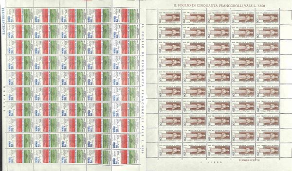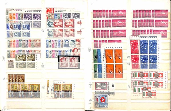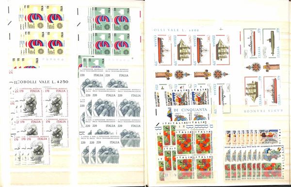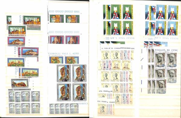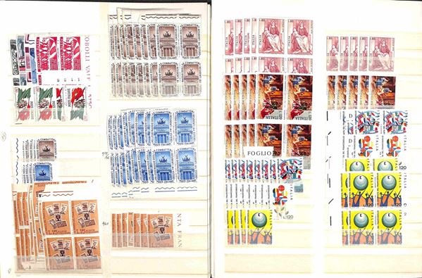 REPUBBLICA - 1954/1998 - Accumulazione ordinata con molte ripetizioni di valori nuovi del periodo in 5 classificatori + 7 cartelle con fogli dal 1957 al 1981 - ottimo insieme con alcune presenze da dettagliare pił un valore di facciale conteggiato solo per i fogli interi e blocchi di oltre Lire 3.000.000 - merita esame