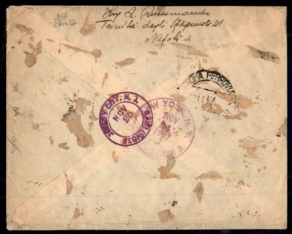 Sei esemplari del 100 lire Democratica (565) + quartina del 20 lire (561) su assicurata da Napoli a Jersey City (USA) del 21.11.47