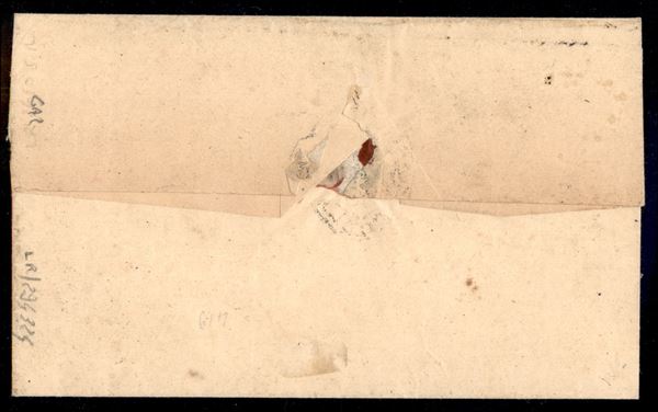 Striscia di quattro del 1/2 baj (1A) su sovracoperta di lettera da Toscanella a Viterbo - Diena + Chiavarello