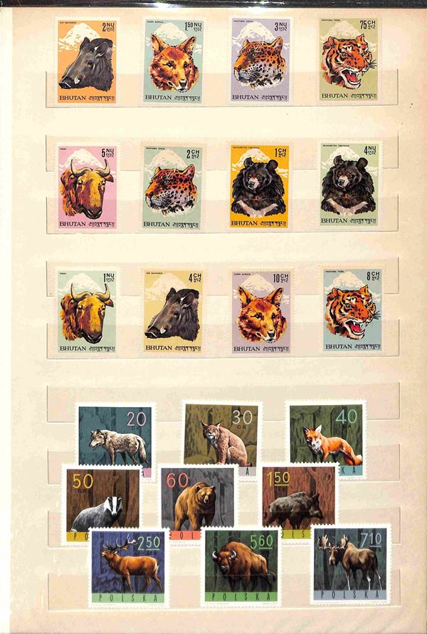 TEMATICA ANIMALI - 1950/1990 - Raccola di francobolli nuovi pił qualche usato del periodo montati su 10 fogli d'album fronte retro - molte serie complete di diversi paesi del mondo - merita esame