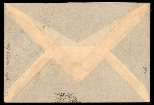 Uomini Illustri (434 + 435) + Augusto (418 + 421) + complementare su aerogramma da Firenze a Rio de Janeiro del 27.8.38 - in tariffa - molto bello - Diena