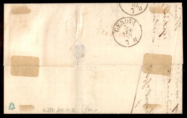 Via di Mare (rosso) annullatore di 20 cent indaco (2) su lettera per Genova del 2.9.62 - molto bella - ex coll. Provera - Giulio Bolaffi