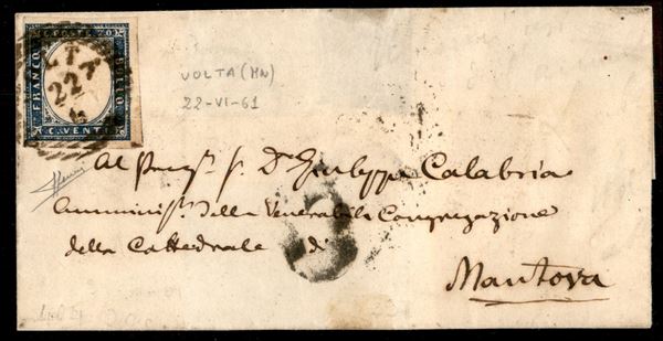 Volta (linee orizzontali - P.ti 8) - lettera del 22.6.1861 per Mantova affrancata con 20 cent IV di Sardegna (15B) - firma Sorani