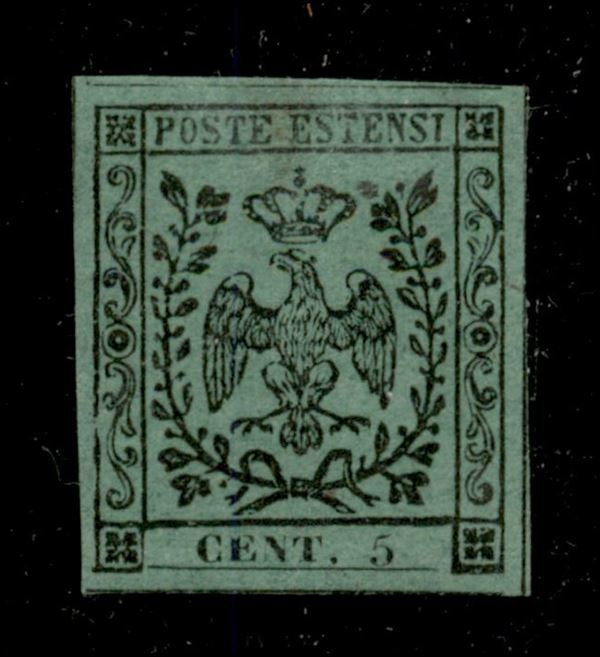1852 - c.5 senza punto dopo le cifre (1) nuovo con piena gomma e ben marginato, cert.Colla