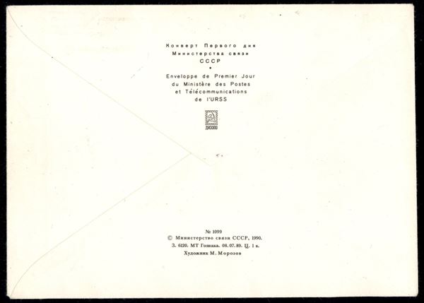 1993/1994 - Stazione orbitale Mir - Soyuz TM16-TM-19 - cosmogramma di lunga durata dalla Soyuz TM-16 alla Soyuz TM-9, con una permanenza nello spazio di un anno esatto - bollo pentagonale e ottagonale stellare blu di bordo Mir, bollo francese "Altair CNES 1993" e annullo ottagonali di bordo Mir "CC*CP" nelle seguenti date: 3.7.1993, aggancio Soyuz TM-17/Mir; 22.7.1993, distacco Soyuz TM-16/Mir; 10.1.1994, aggancio Soyuz TM-18/Mir; 3.7.1994, aggancio Soyuz TM-18/Mir - firme autografe di tutti i cosmonauti a bordo della stazione orbitale durante l'anno: G.Manakov e A.Poleschuk, Soyuz TM-16; V.Tsibliev, A.Serebrov e J.P.Haigneré (Francia) x Soyuz TM-17; V.Afanasiev, A.Poliakov e Y.Usachev, Soyuz TM-18; Y.Malenchenko e T.Musabayev, Soyuz TM-19 - ottima qualità