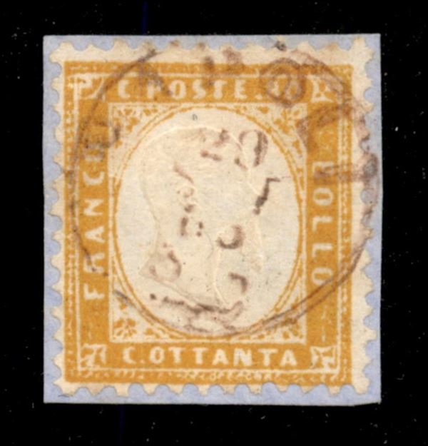 Bellissimo frammento recante 80 cent (4) ben dentellato annullato a Napoli 20.9.63 in cerchio rosso - Avanzo + Mondolfo + cert. ED