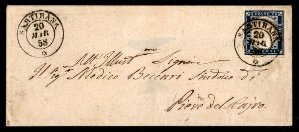 Bustina affrancata con 20 cent (15Ab) ben marginato - Sartirana DC 20.3.58 (P.ti 11) - nitido e di pregio - ex coll. Provera