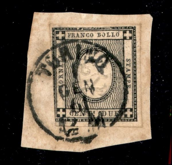 Frammento con c.2 nero (20) annullato TORINO 1 GEN.61, primo giorno d'emissione, cert. E.Diena