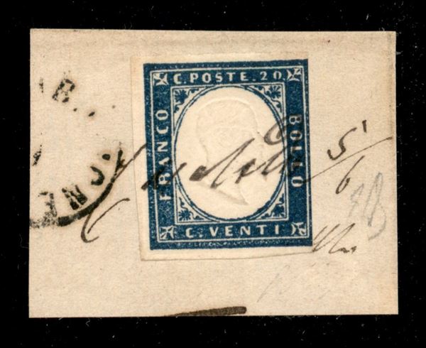 Frammento recante un 20 cent Sardegna (15C) annullato con bollo grafico di Casaloldo (P.ti 12) - probabile ultima data nota (5.6.61) - raro - Em.D